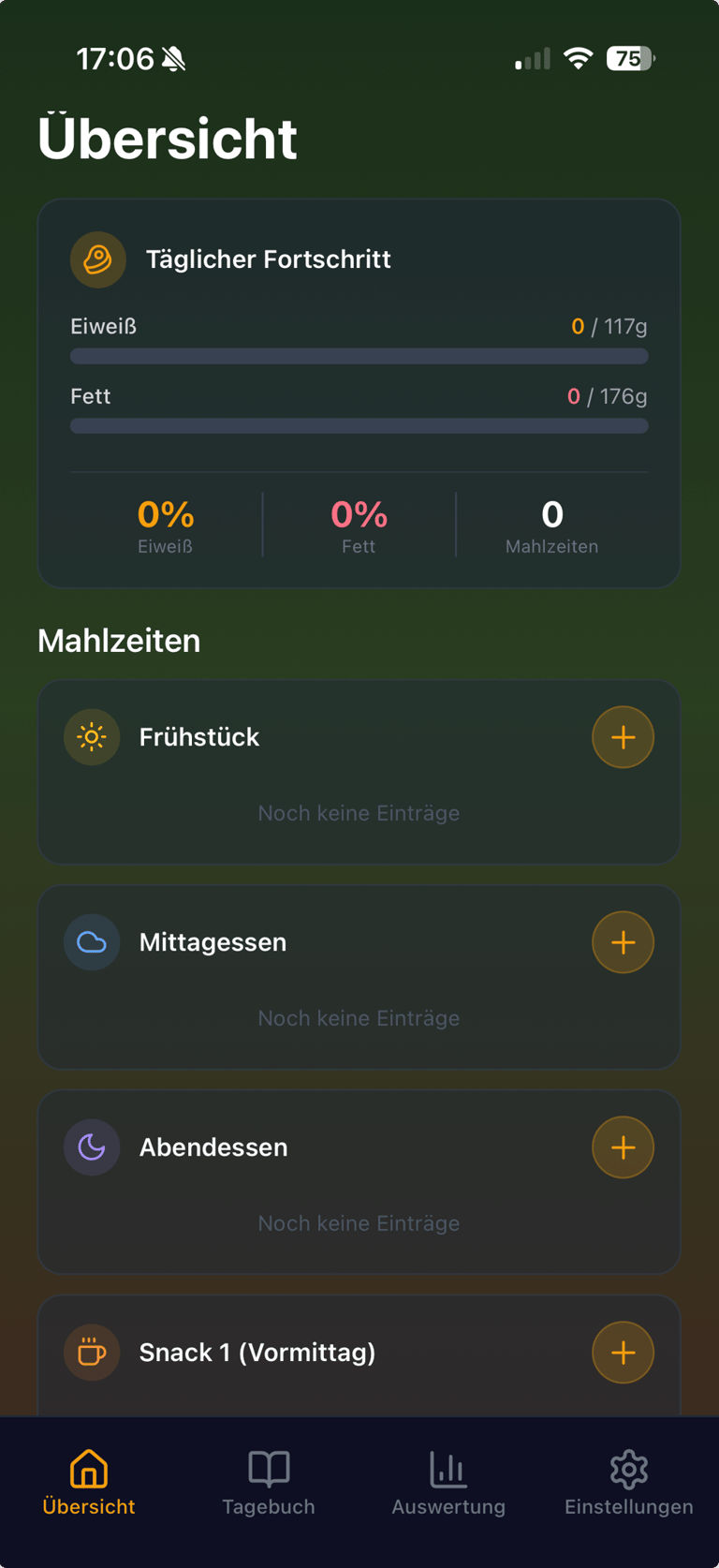 Intelligentes Dashboard: Deine Makros und dein Wohlbefinden auf einen Blick.