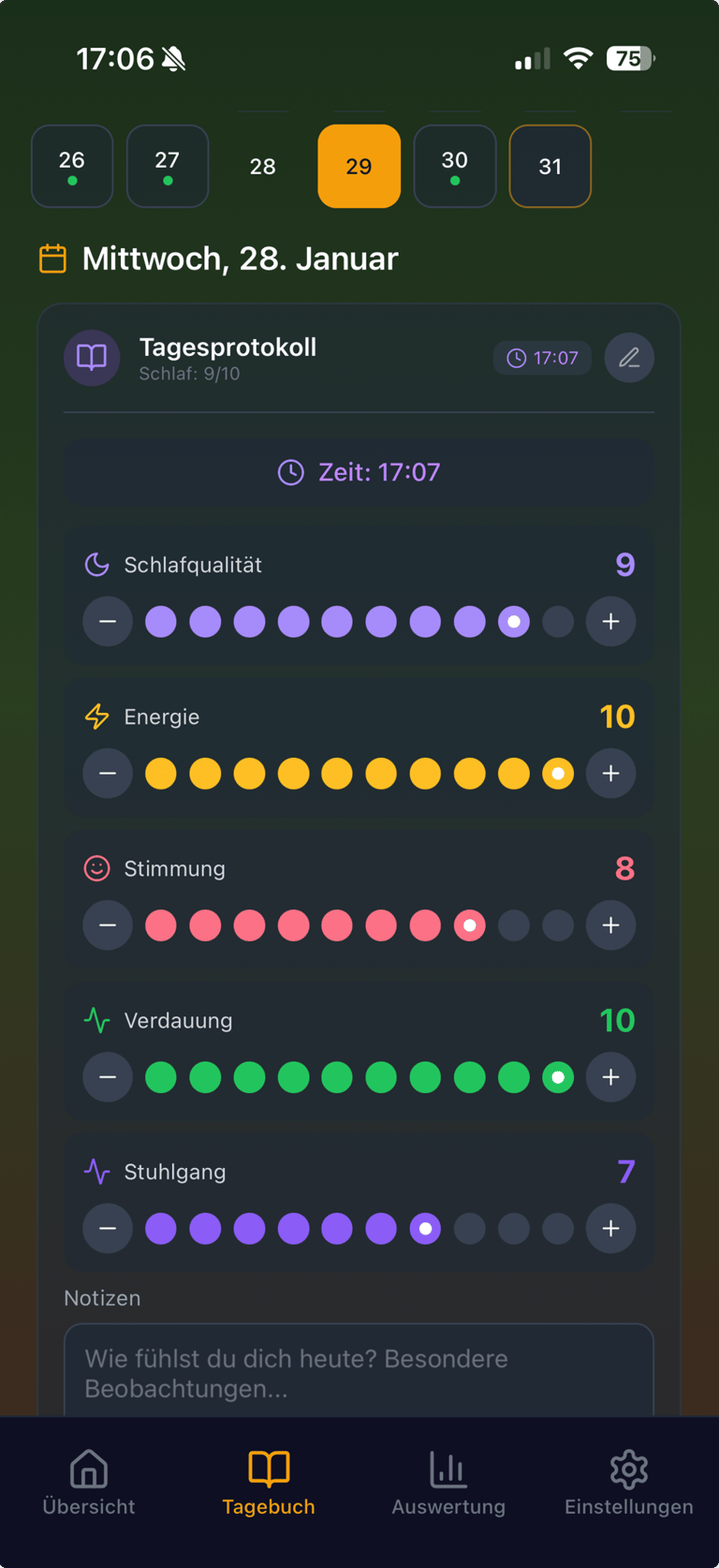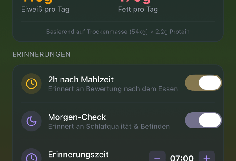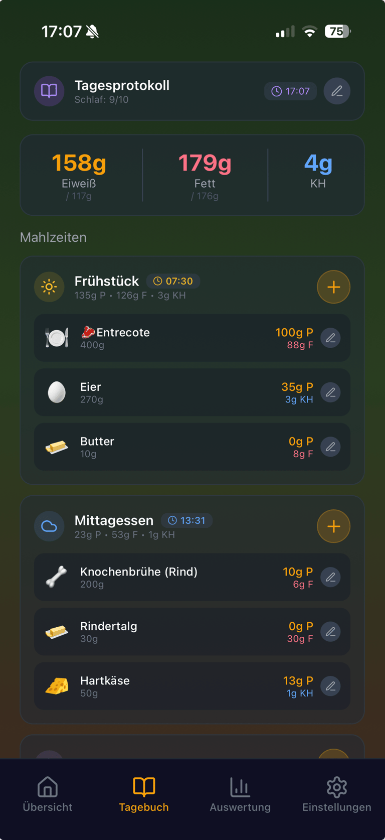 Tipp: Nutzt du diese App begleitend zu meinem 12-Wochen-Carnivore-Kurs? Die Export-Funktion ist ideal, um deine Fortschritte direkt in den wöchentlichen Calls zu besprechen und deine Strategie anzupassen.
