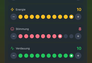 Intelligentes Dashboard: Deine Makros und dein Wohlbefinden auf einen Blick.