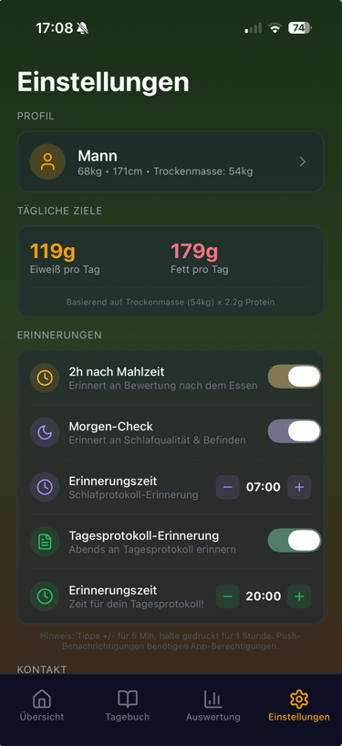 Tipp: Nutzt du diese App begleitend zu meinem 12-Wochen-Carnivore-Kurs? Die Export-Funktion ist ideal, um deine Fortschritte direkt in den wöchentlichen Calls zu besprechen und deine Strategie anzupassen.
